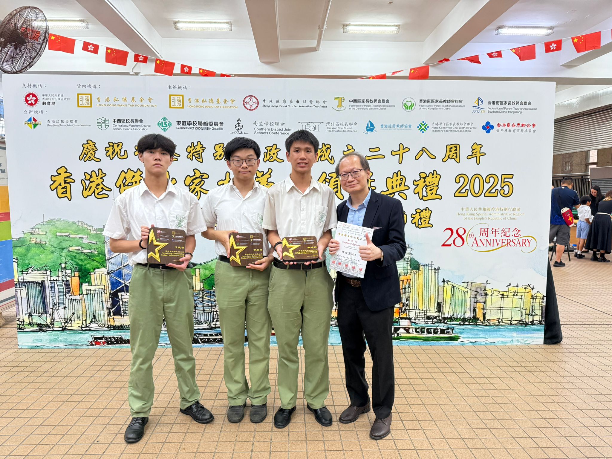 「香港傑出學生義工」獎項:5A 文德明同學、5A 胡啟然同學、5B 蔡君昊同學