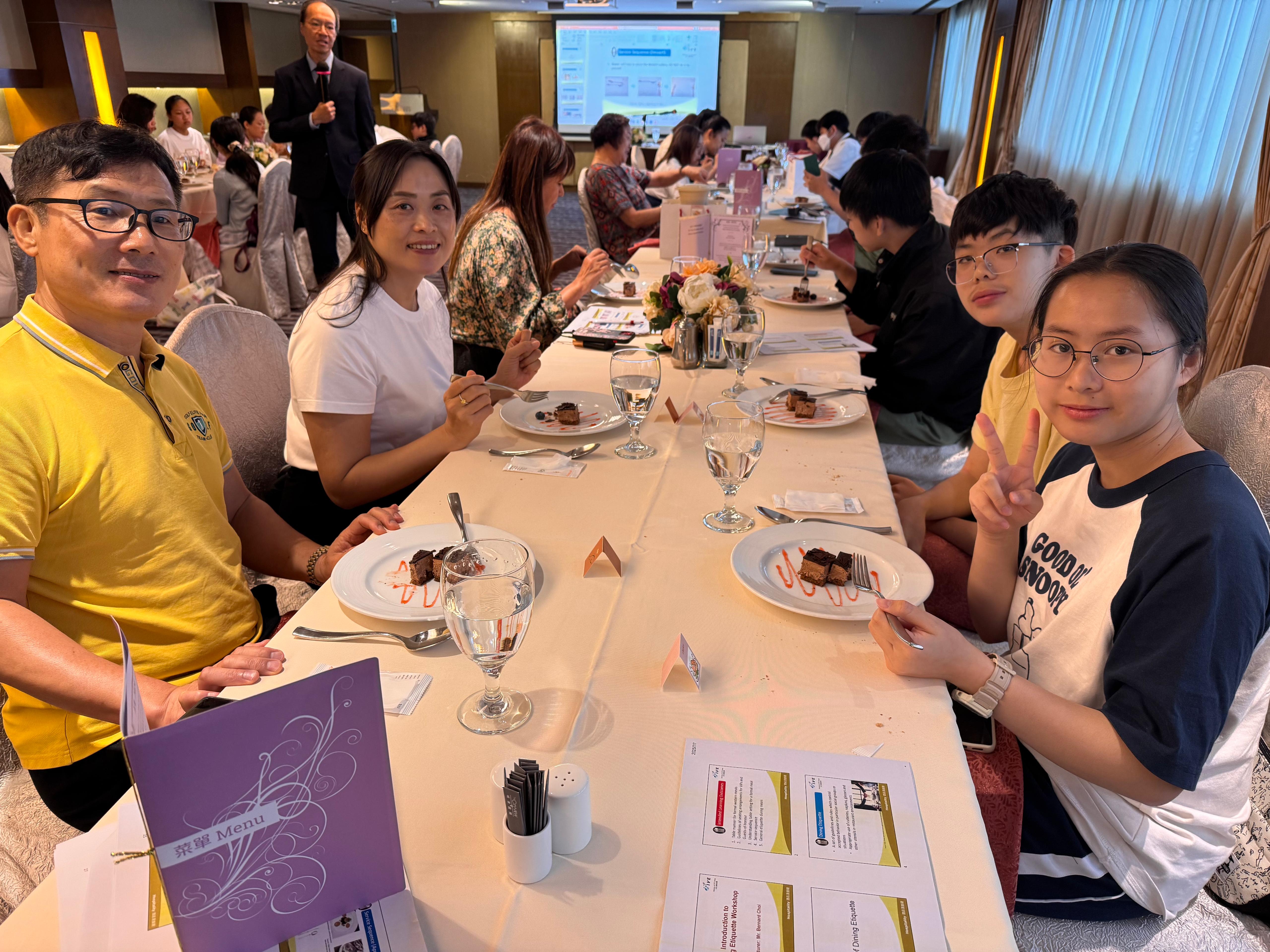 為促進親子交流,本會於2025年7月舉辦《親子餐桌禮儀工作坊》。此次活動邀請了VTC酒店及旅遊導師執教,讓家長和學生共同學習餐桌禮儀。導師將詳細講解衣著、餐具運用及進食次序,並提供真實西餐場景的實踐機會。工作坊幫助同學們為升學及未來社交場合做好準備。感謝家長和學生的熱情參與,共同提升餐桌禮儀素養!