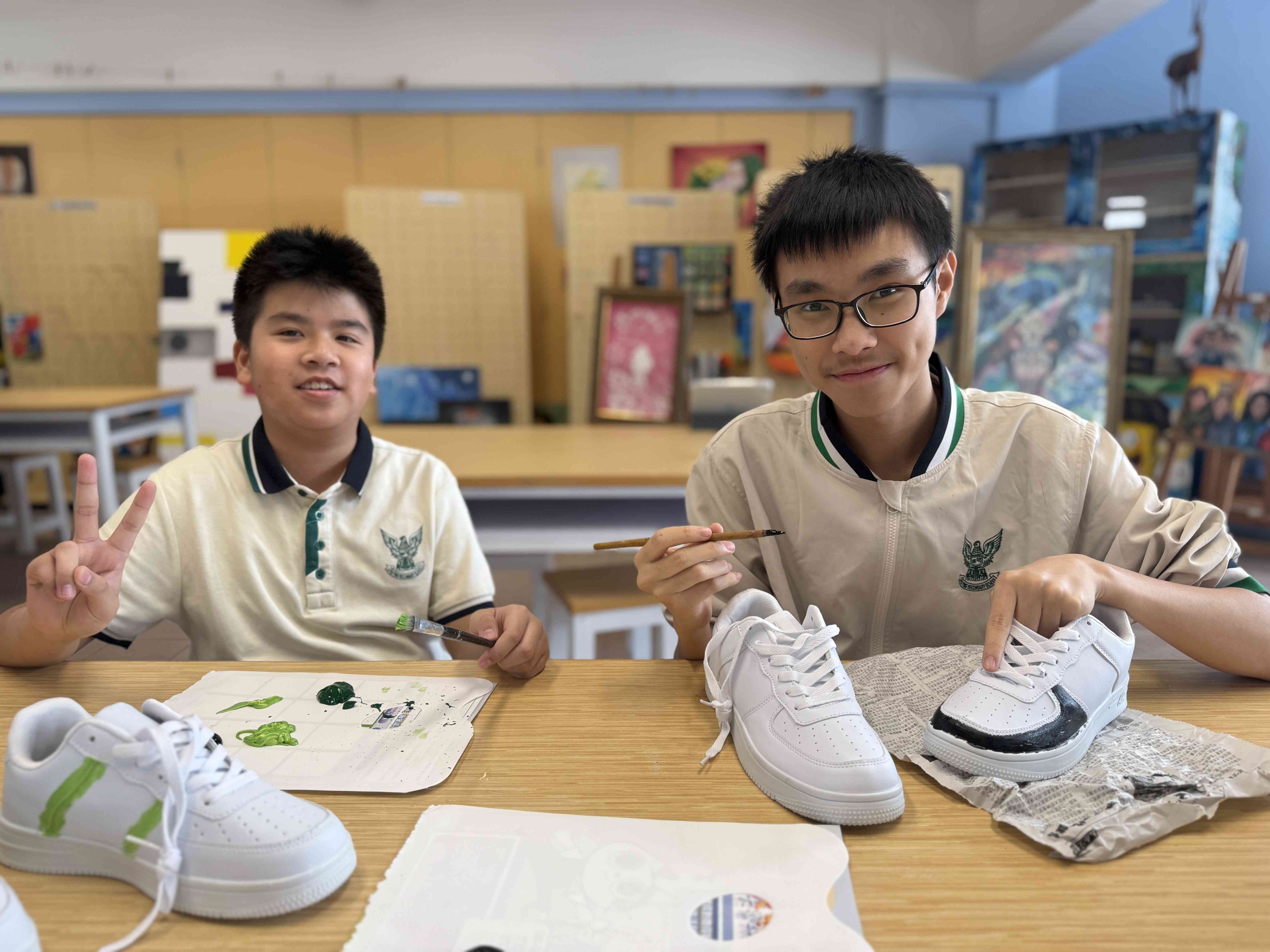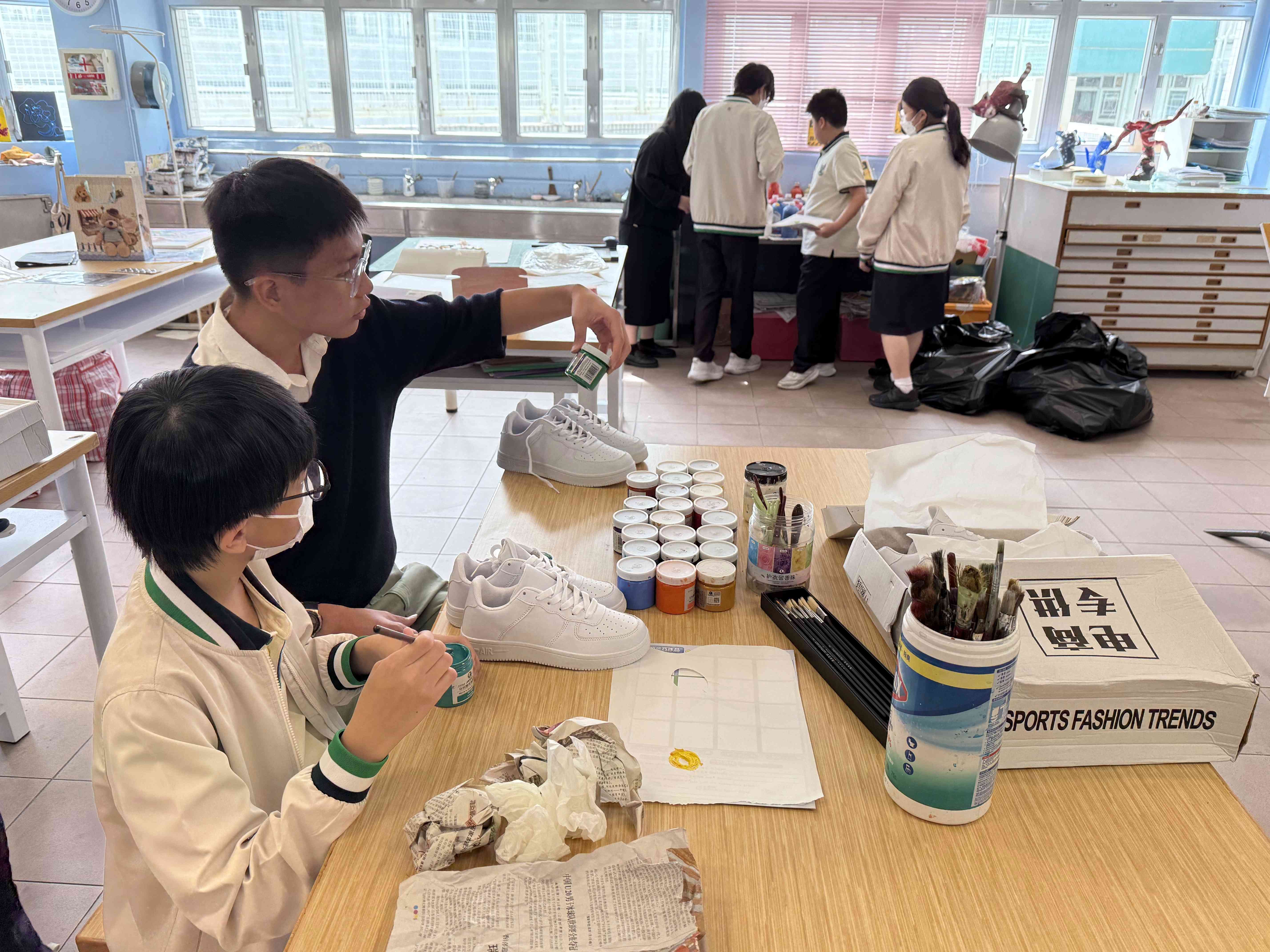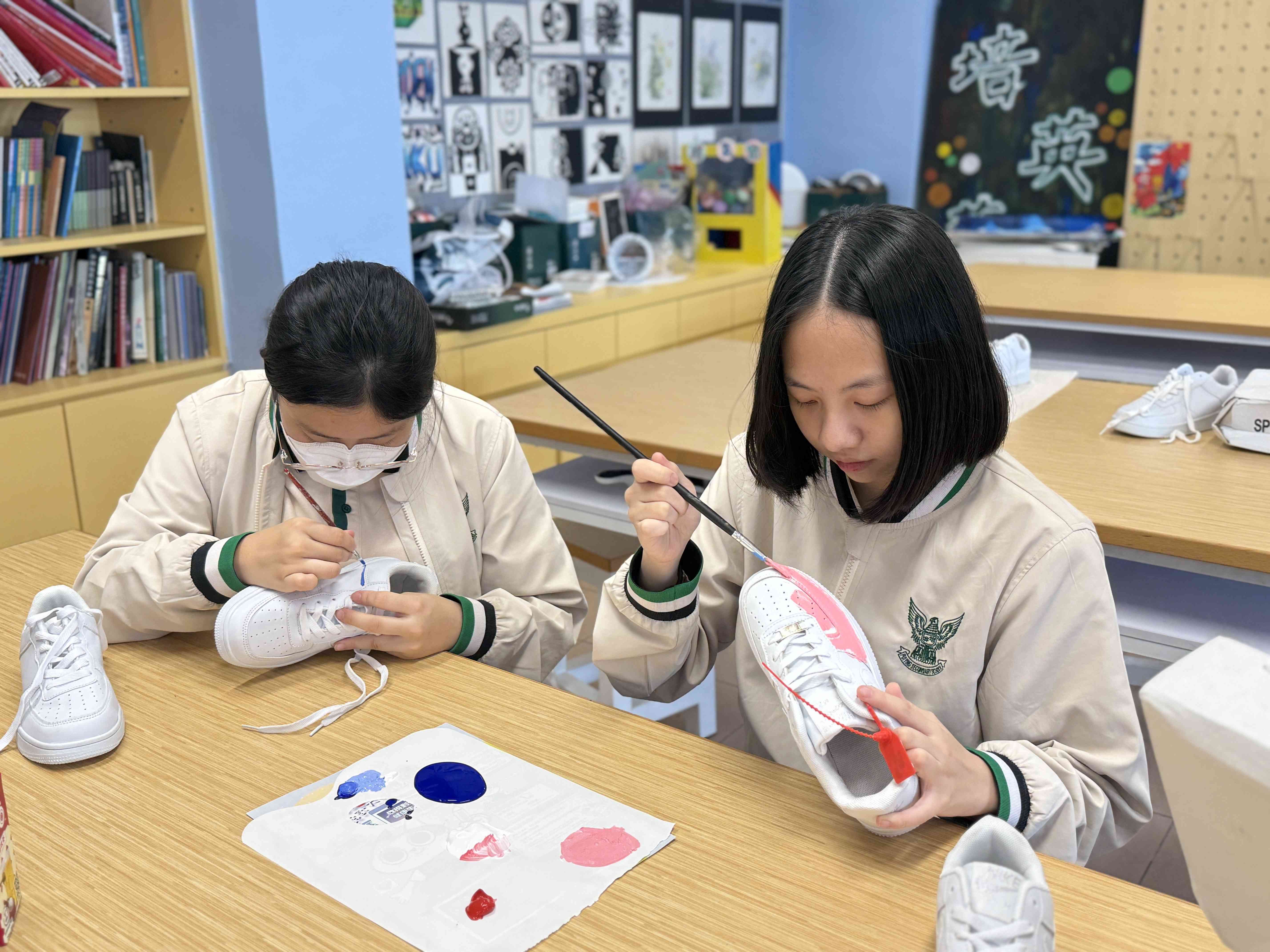 學生支援組與視藝科在11月13日午間合辦了「午間鬆一鬆-自畫鞋創作」活動,讓同學親手將白色素鞋變成屬於自己獨一無二的藝術創作。