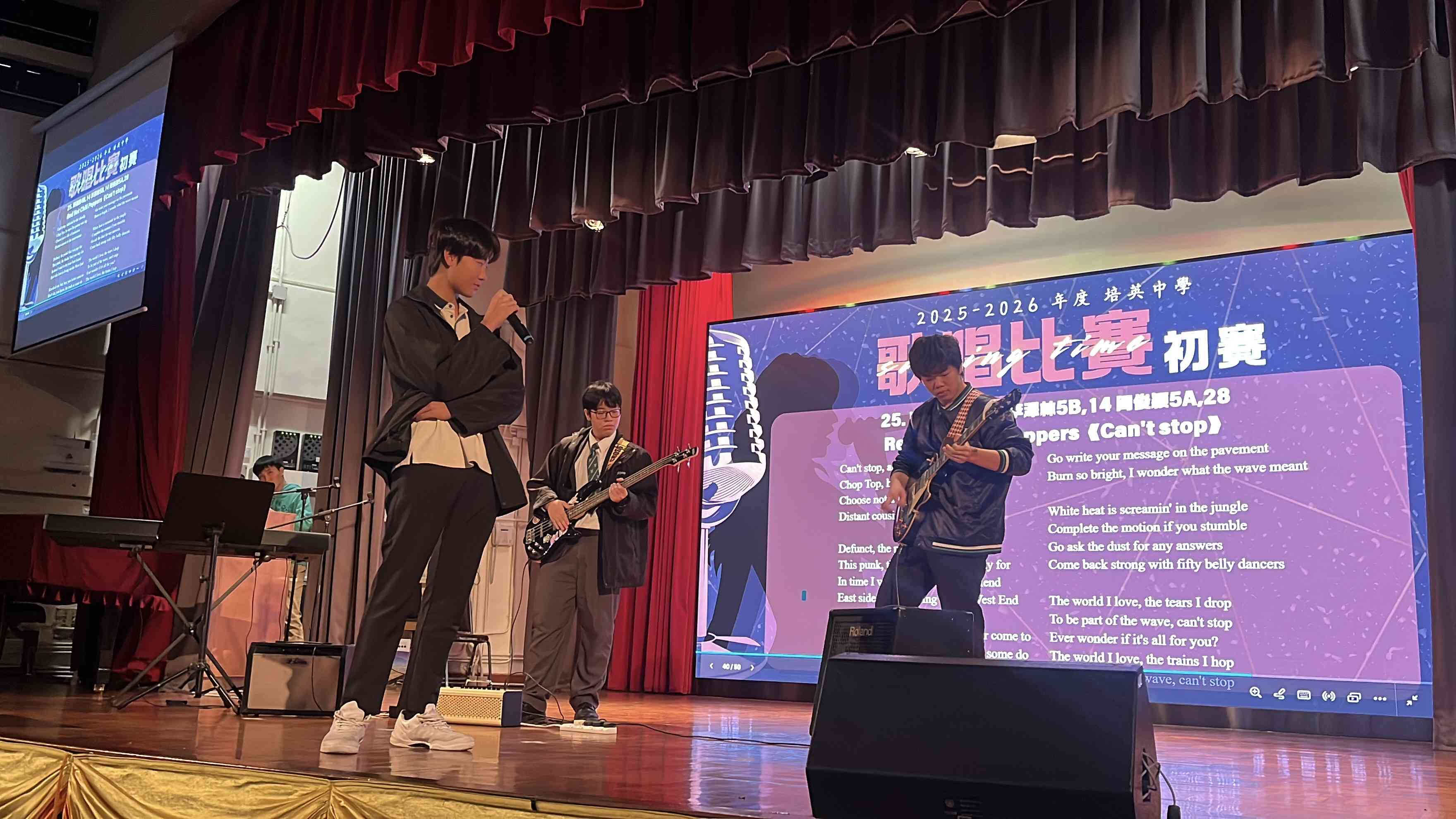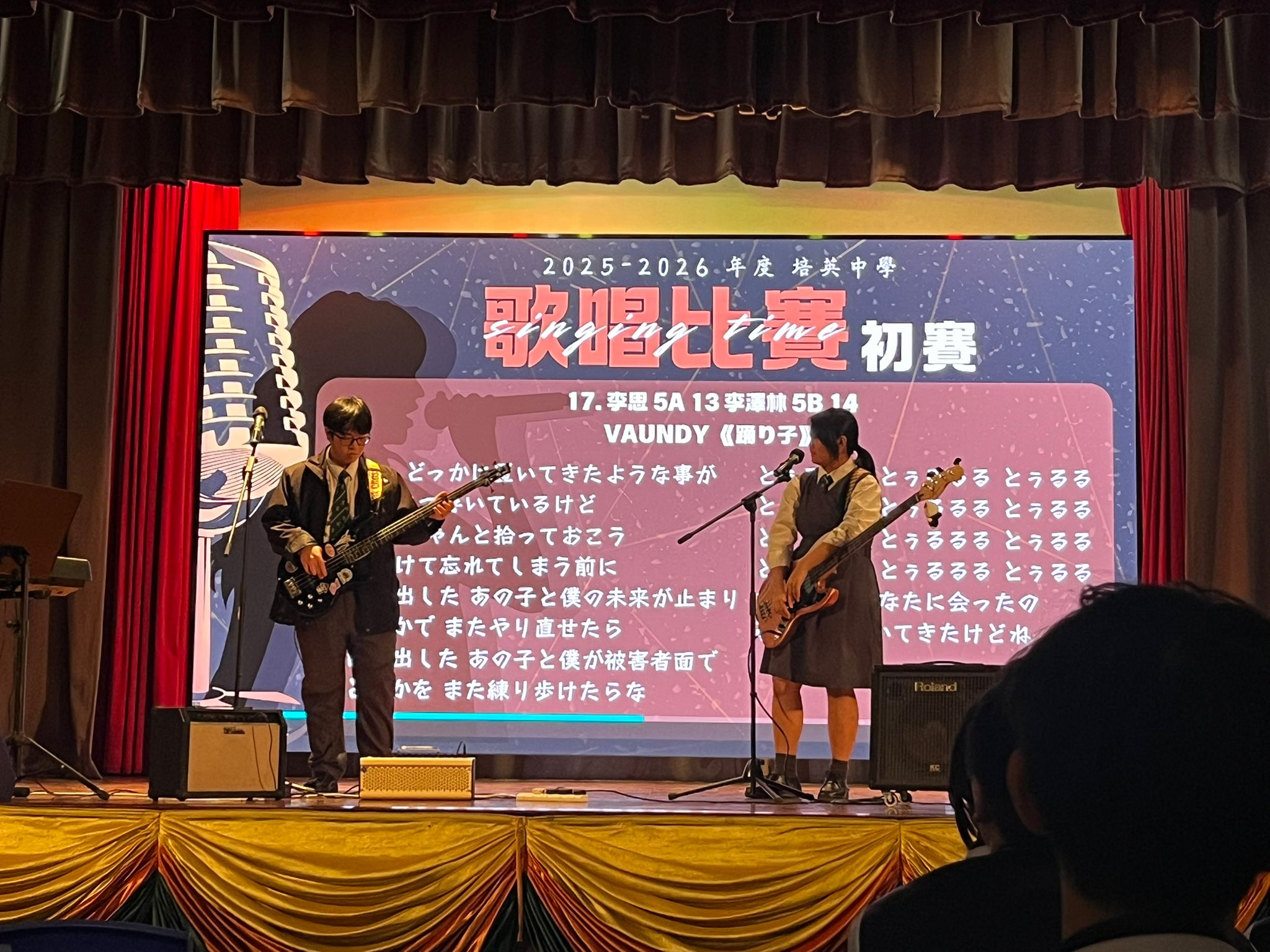 而在星期五的周會時段,舉辦了歌唱比賽的初賽。多位同學展現了他們的才華,表演精彩,獲得了熱烈的回響。學生們為參賽同學製作了精美的應援牌,展現了他們的支持和團結精神。
