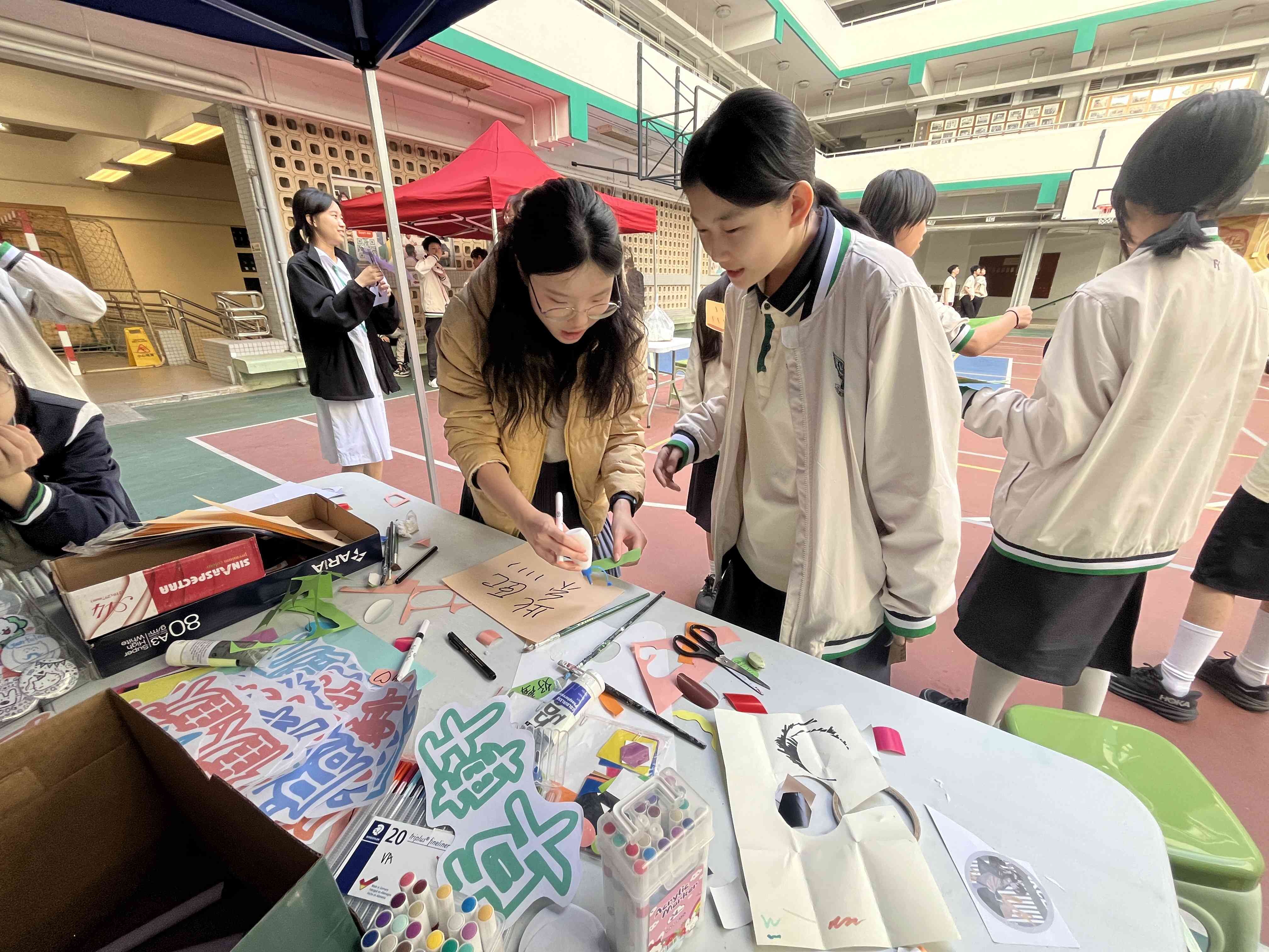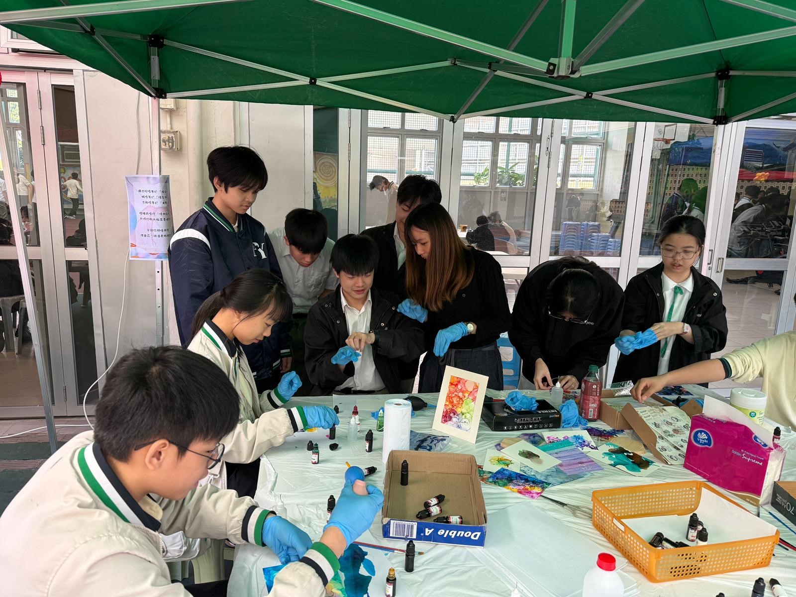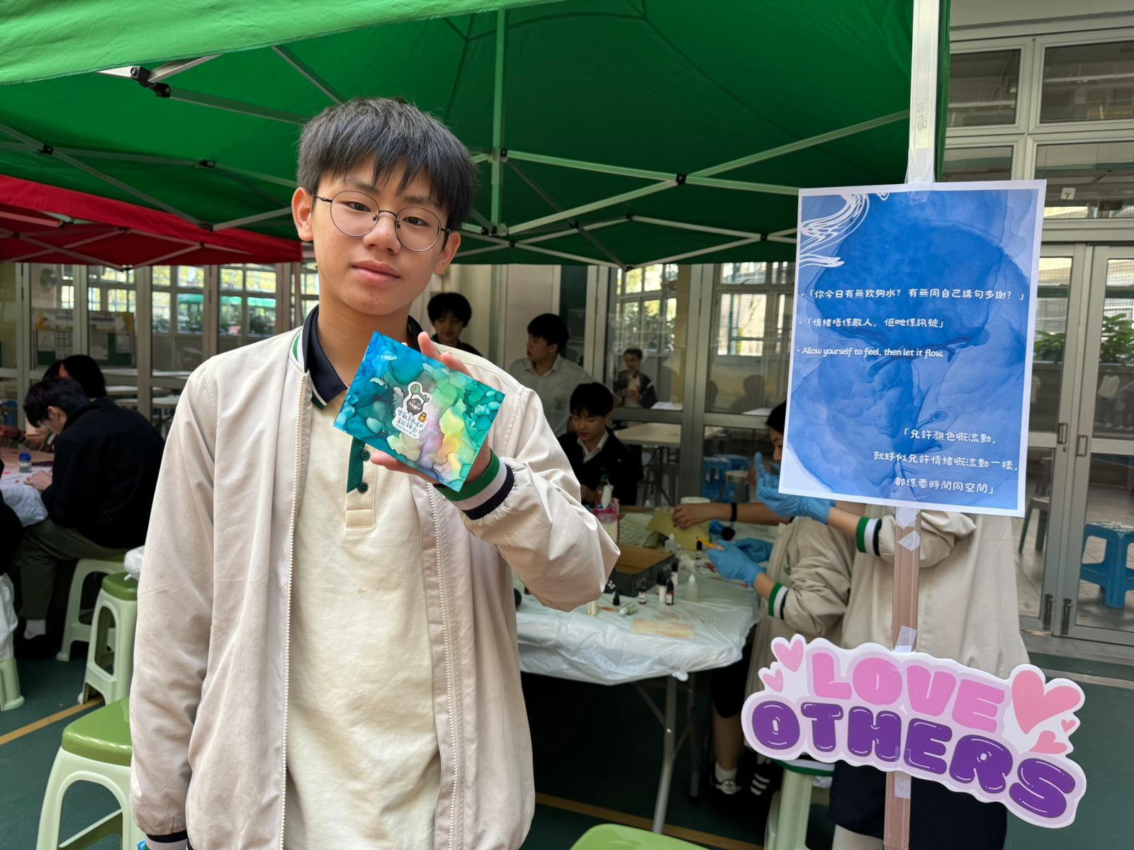 視覺藝術科和社工團隊合作,在午間時段有多個不同類型的手作攤位,例如:襟章設計、紙黏土花瓶磁石貼製作、酒精畫創作、DIY果撻製作等等,讓學生親自體驗創作的過程。活動中,同學們學習了各種手作技巧,享受藝術帶來的寧靜與愉快。