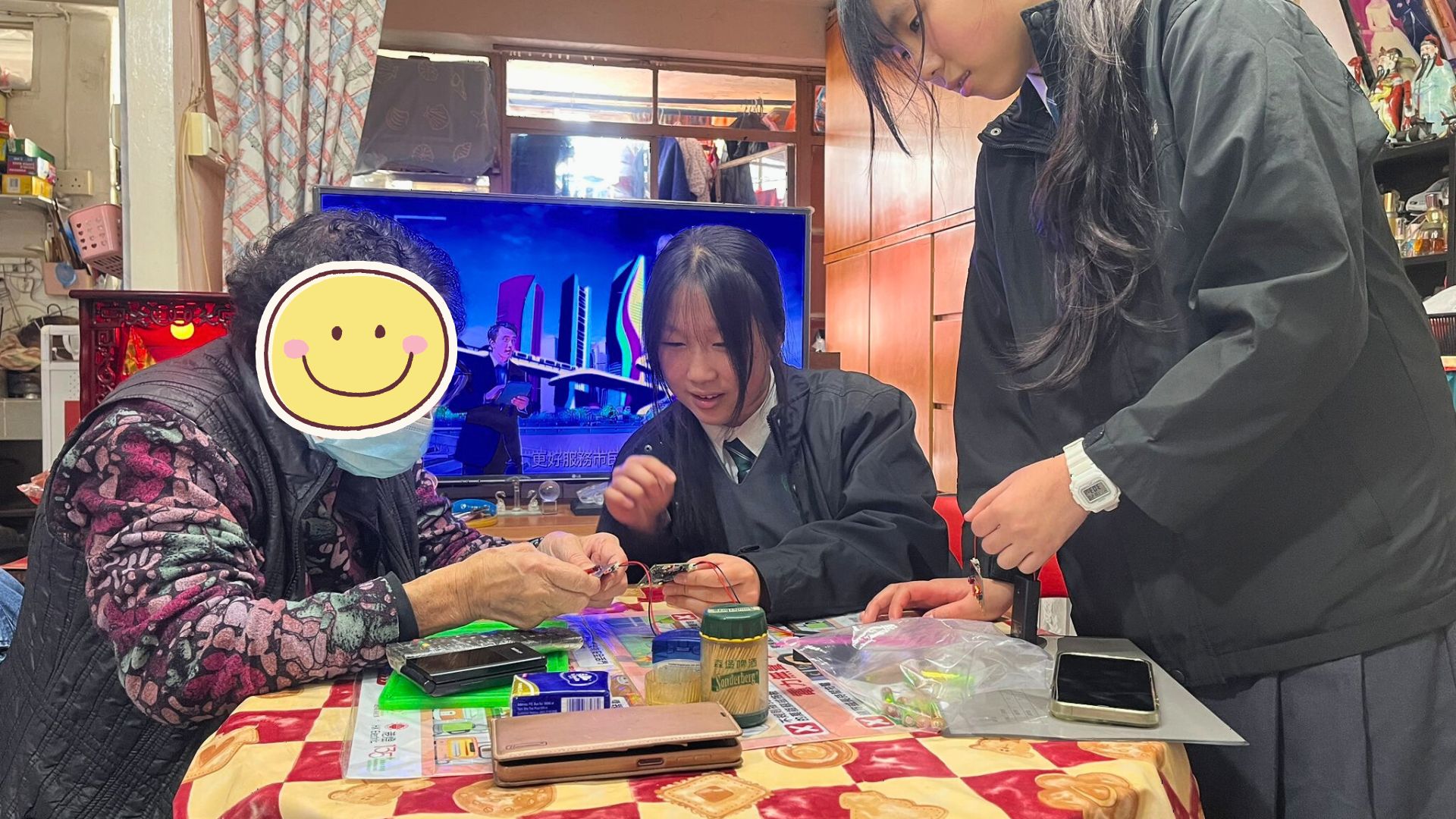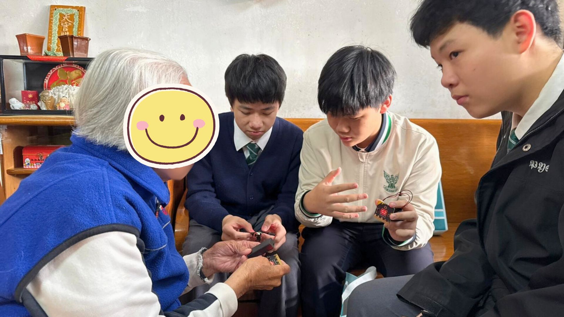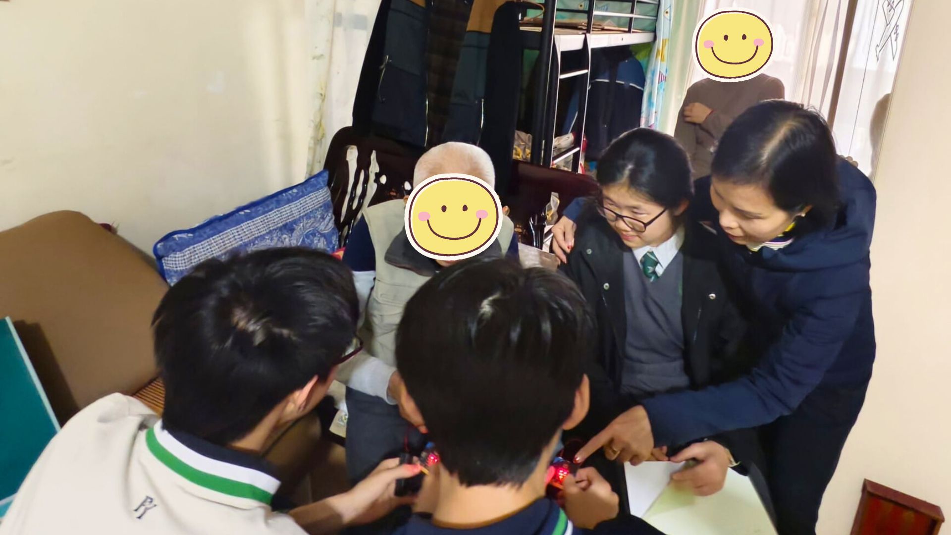 探訪期間,除了派發新春福袋及送上節日問候外,同學更即場邀請長者試玩遊戲。看著長者們在同學引導下按著按鈕,看到 LED 燈閃出心形圖案時笑得合不攏嘴,那份跨代共融的喜悅,比任何言語都來得真實。