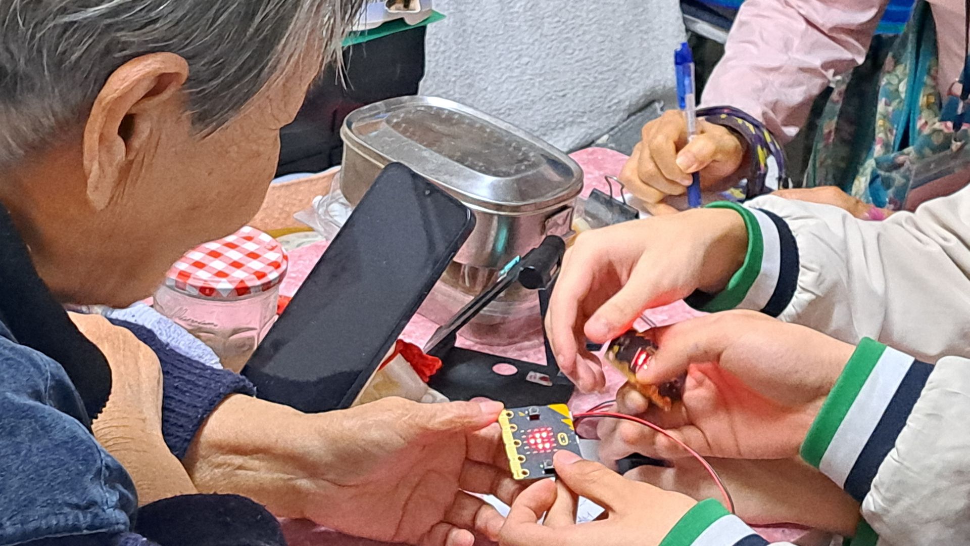 是次活動別具意義,同學們學以致用,將資訊及通訊科技科課堂上學到的 micro:bit 知識,編寫成簡單有趣的電子互動遊戲。遊戲設計特意考量長者的視力與反應,讓科技變得平易近人。