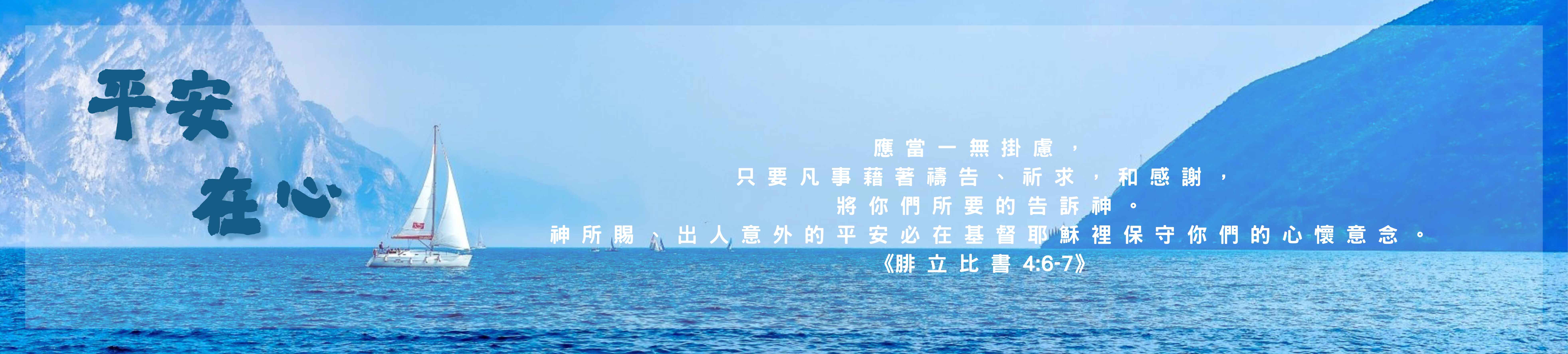 「應當一無掛慮,只要凡事藉著禱告、祈求,和感謝,將你們所要的告訴神。神所賜、出人意外的平安必在基督耶穌裡保守你們的心懷意念。」「我賜給你們一條新命令:你們要彼此相愛。我怎樣愛你們,你們也要怎樣彼此相愛。」《腓立比書4:6-7》