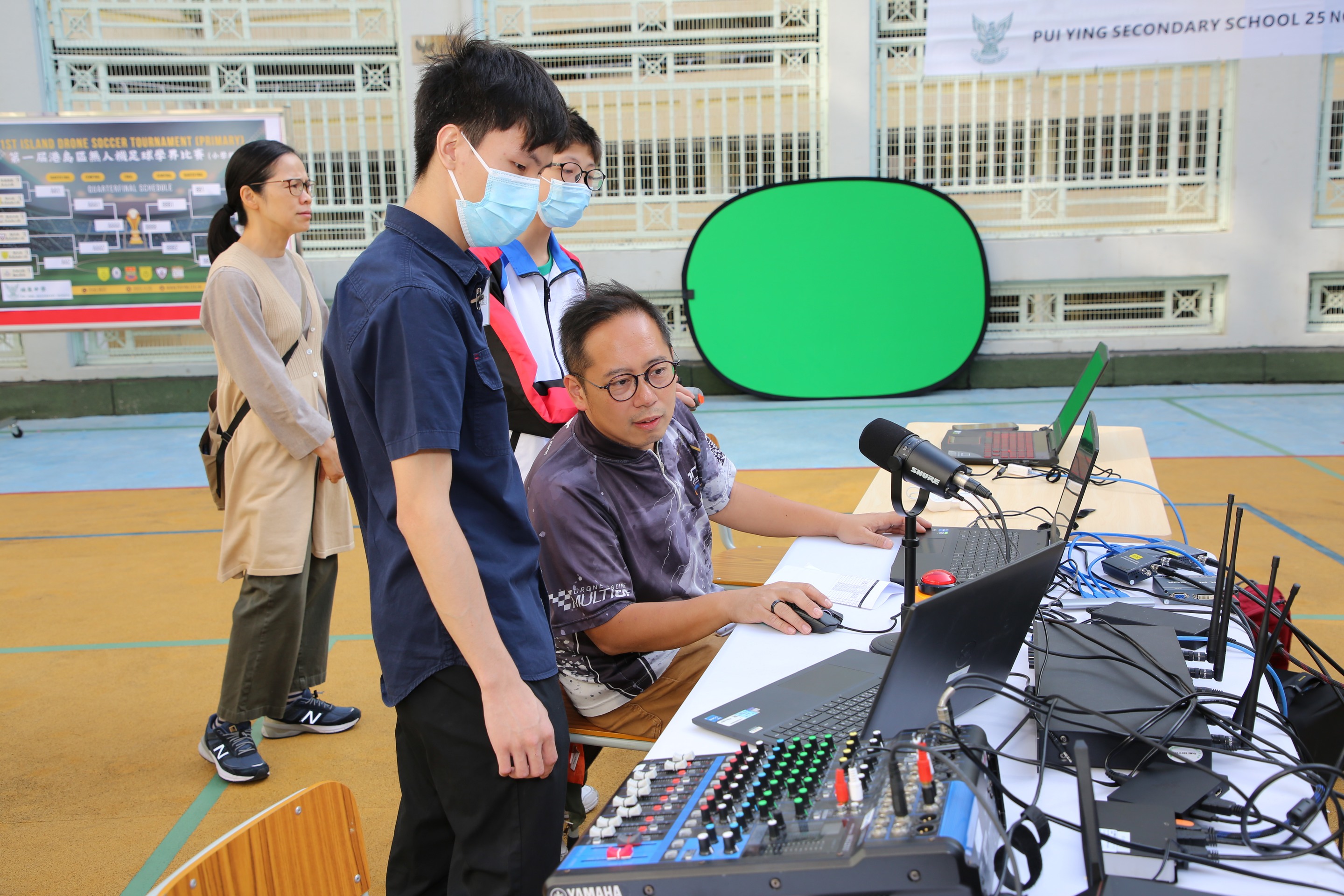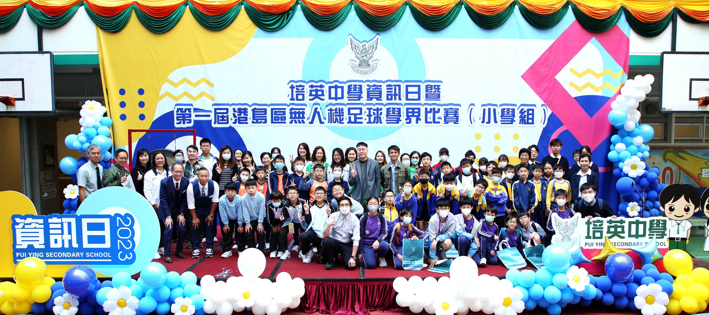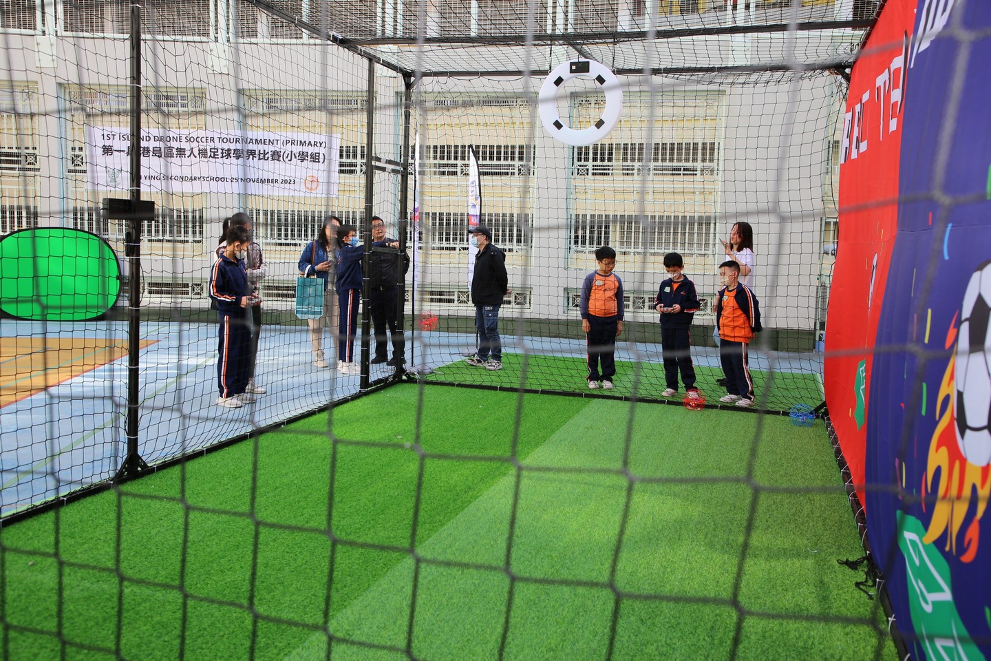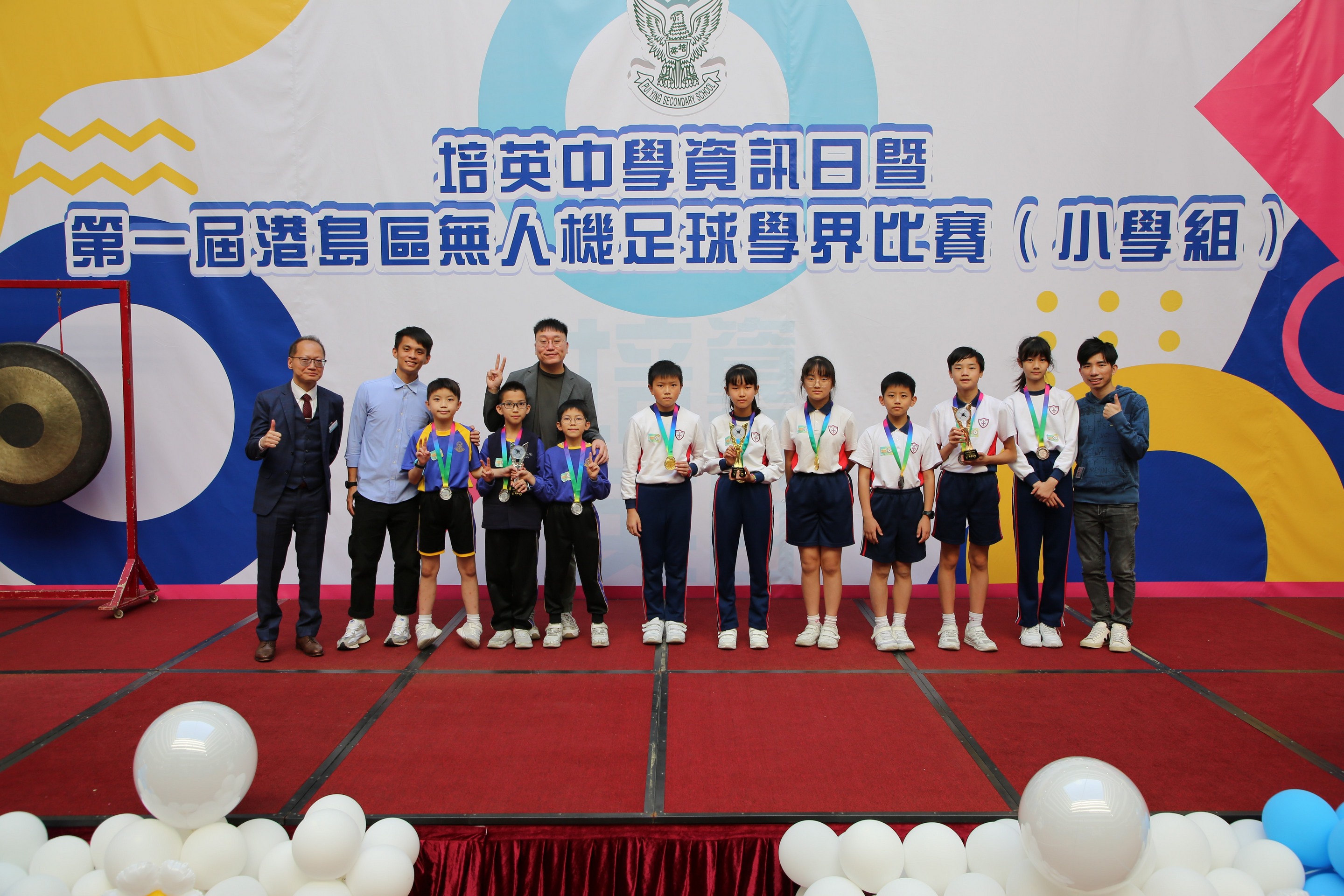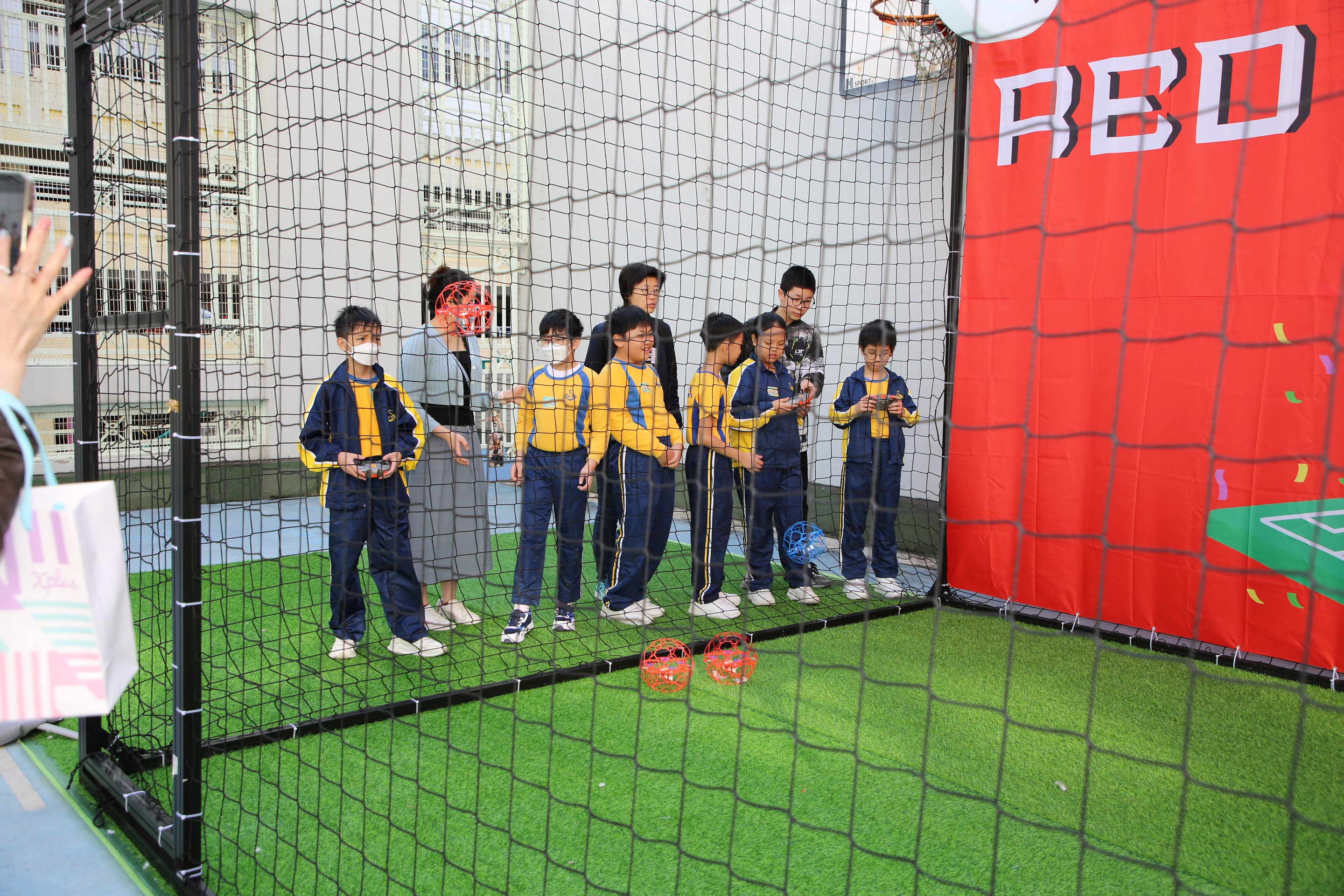 今年INFO DAY節目精彩豐富,當天本校舉辦了「第一屆港島區無人機足球學界比賽(小學組)」,共六間小學(12組)參賽,場面相當熱鬧,賽制以三局兩勝直接淘汰賽方式讓參與組別對壘,同學在場內操控無人機足球,繞過重重障礙,盡顯飛行員敏捷純熟的駕駛技術。