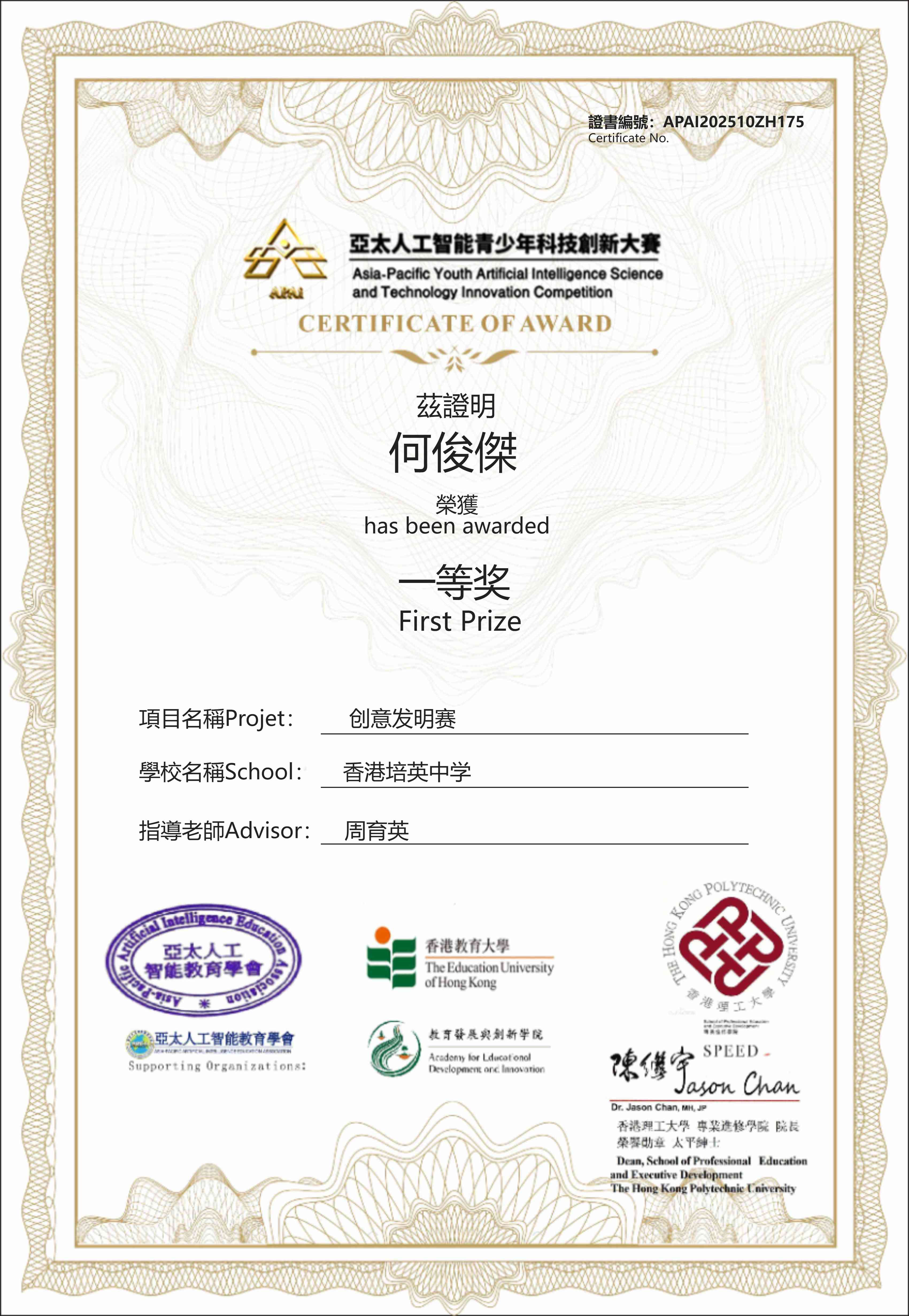 2025APAI是由亞太人工智能教育學會、香港教育大學環球事務處與香港科創協會等多個單位聯合主辦的國際青少年科技創新賽事,旨在促進亞太地區⻘少年創新思維的培養和科學技術的應⽤,參賽者團隊協作,通過充滿想像力、具備創新思維和科技實踐,並具有人文關懷的作品,表達他們對⼈⼯智能和未來世界的理解與創造情感!