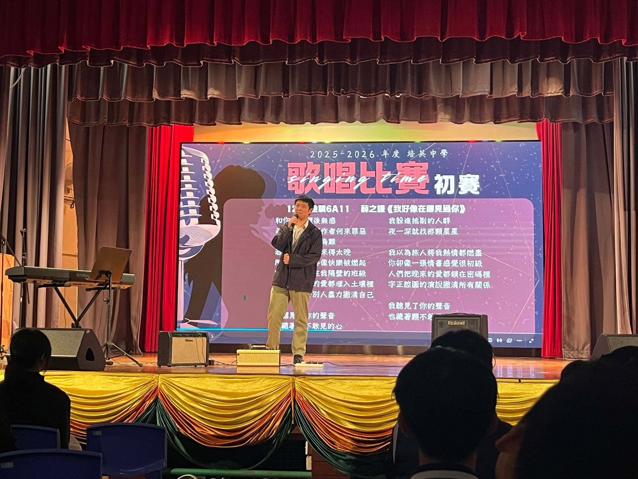 而在星期五的周會時段,舉辦了歌唱比賽的初賽。多位同學展現了他們的才華,表演精彩,獲得了熱烈的回響。學生們為參賽同學製作了精美的應援牌,展現了他們的支持和團結精神。