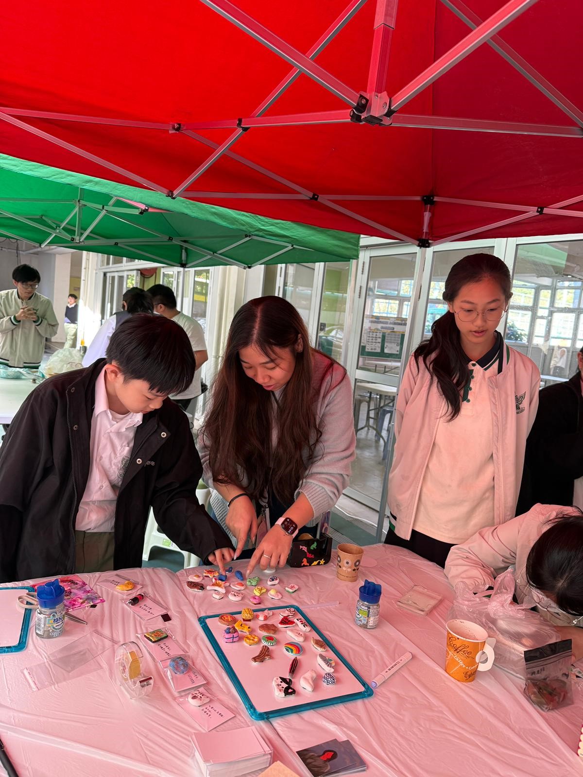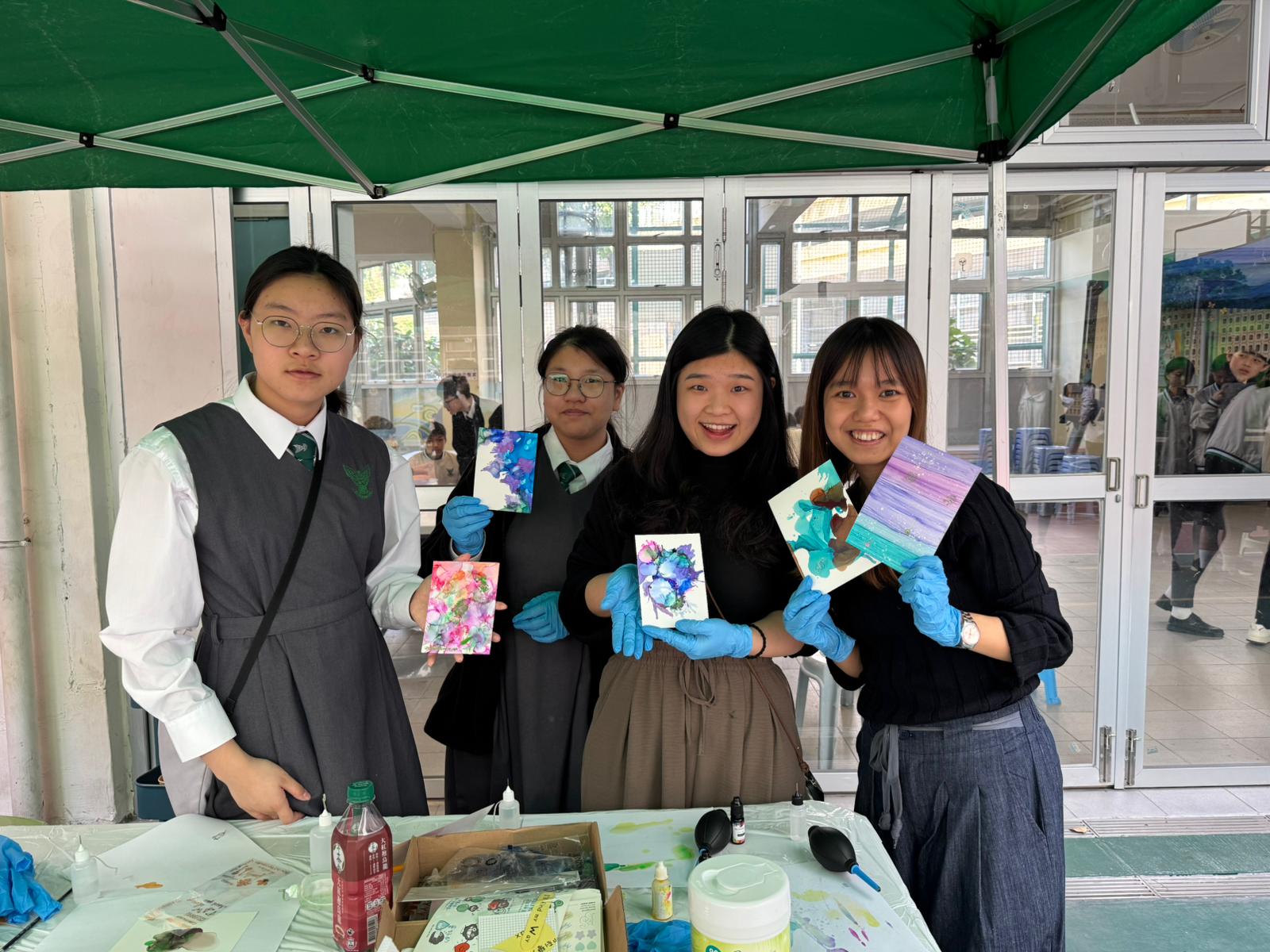 視覺藝術科和社工團隊合作,在午間時段有多個不同類型的手作攤位,例如:襟章設計、紙黏土花瓶磁石貼製作、酒精畫創作、DIY果撻製作等等,讓學生親自體驗創作的過程。活動中,同學們學習了各種手作技巧,享受藝術帶來的寧靜與愉快。