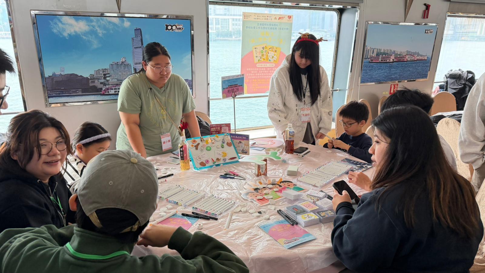 我校社工與視藝科攜手參加了明愛賽馬會赤柱青少年服務的「藝遊南Teen.幸福同行」。這次活動結合了手作藝術和維港遊船,帶領參加者展開了一段藝術與療癒的旅程。大家可創作屬於自己的小手作,並在航行中欣賞到維港的風景,體驗到了過程中的放鬆與快樂。
