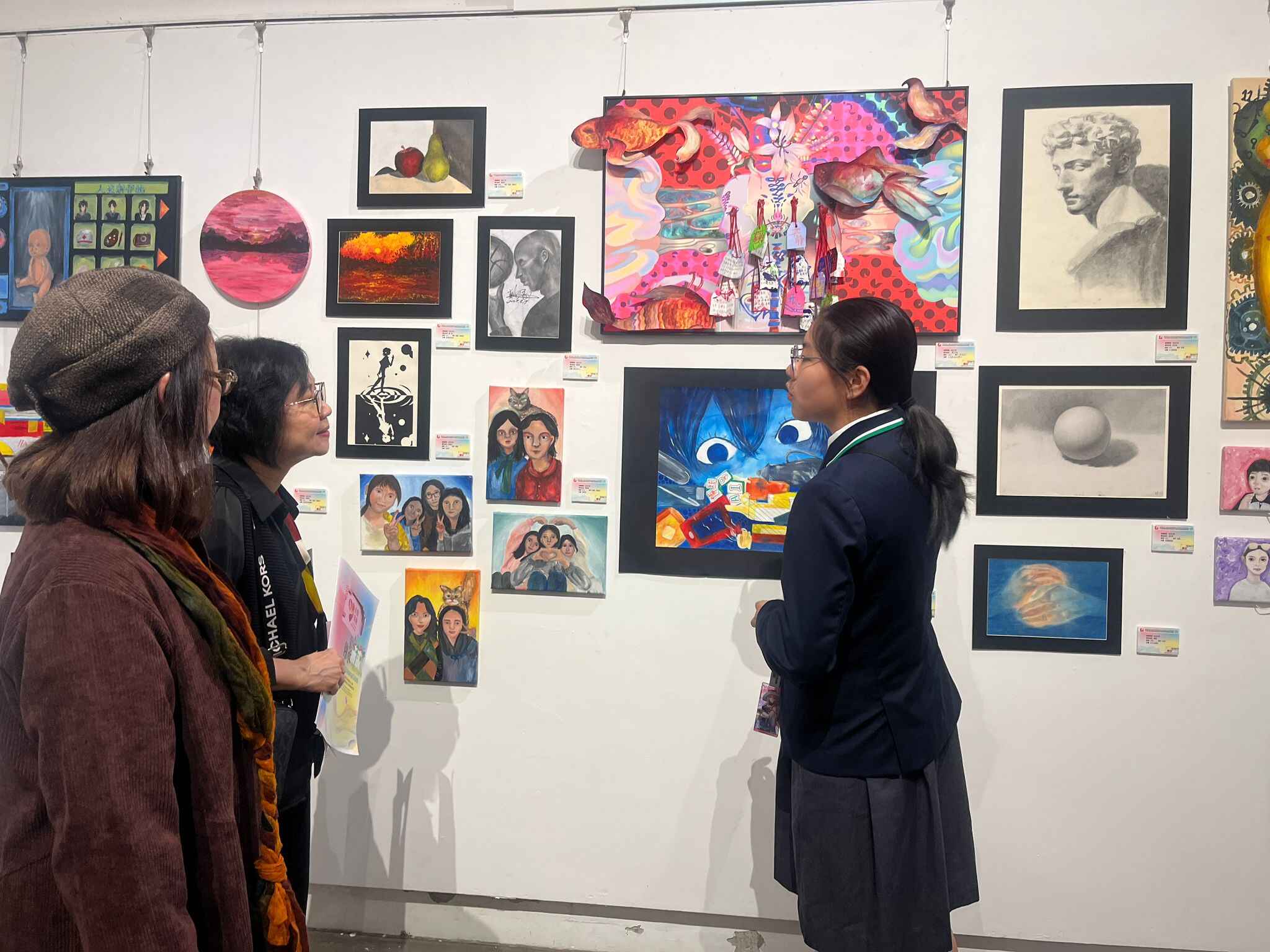 本校學生亦展示了17件初中及高中學生的作品,一眾師生及家長亦到場支持,見證我校學生的成果,並欣賞不同學校之藝術作品。