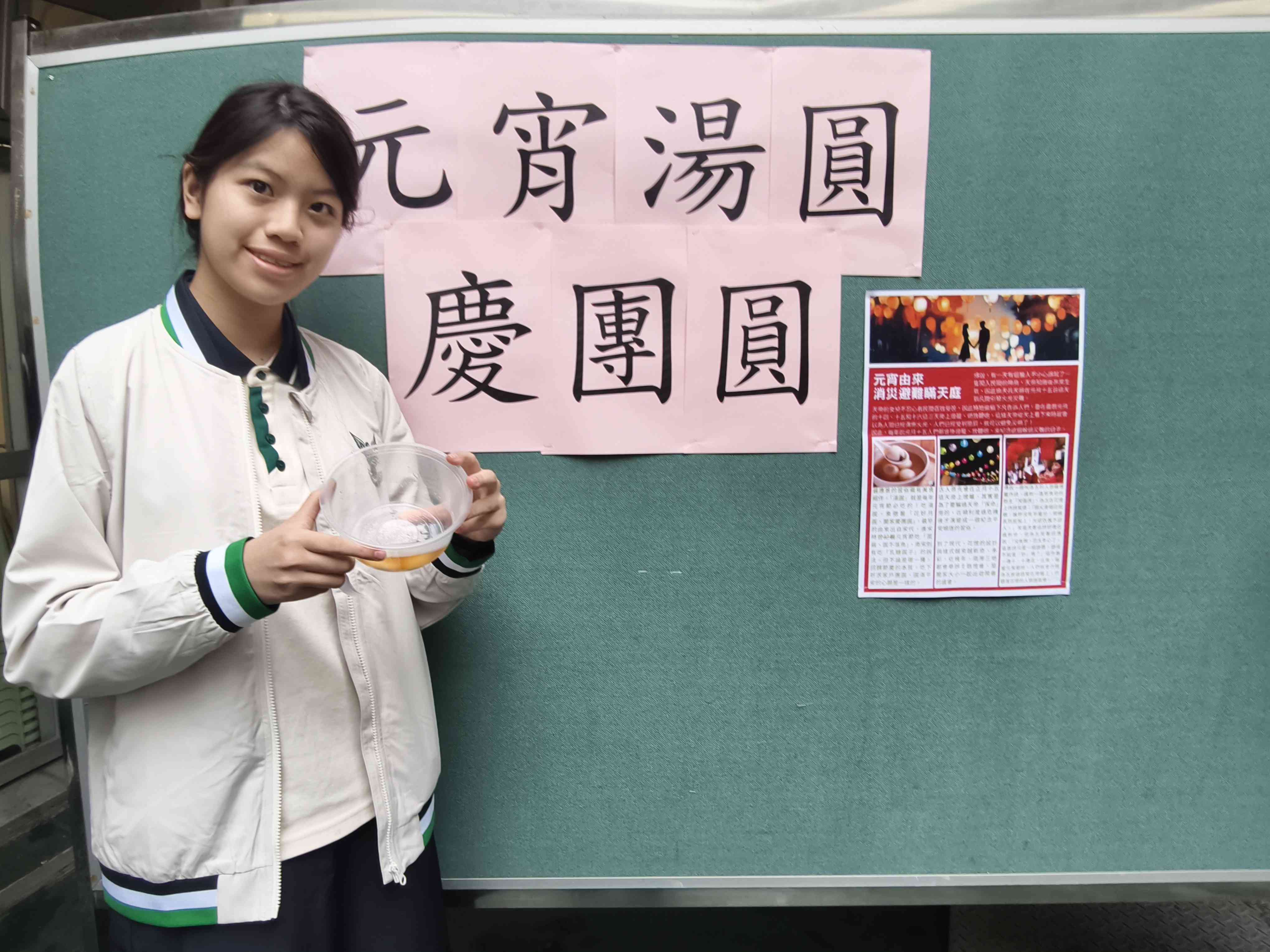 專題講座上,講者從揮春、對聯、湯圓講到元宵節的由來,又從驚蟄說到「打小人」的民間習俗。要數最受歡迎的節目,當然是問答遊戲、廿四節氣對對碰和猜燈謎了。同學們有的皺眉苦思,有的費煞思量,目的都是想猜中燈謎謎底,換取元宵禮物。旁邊的美食攤位傳來陣陣香味,熱騰騰的湯圓讓大家親身感受「食在節日」的傳統智慧。