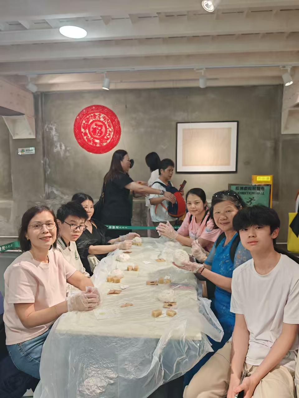 午後的重頭戲是到長洲舊戲院體驗製作平安包。在導師指導下,家長與孩子齊心搓粉、印模,親手製作寓意平安的傳統小食,笑聲不斷。其後的自由時間,有的家庭漫步沙灘,有的品嚐馳名甜品,或穿梭小巷尋幽探勝,各適其適。