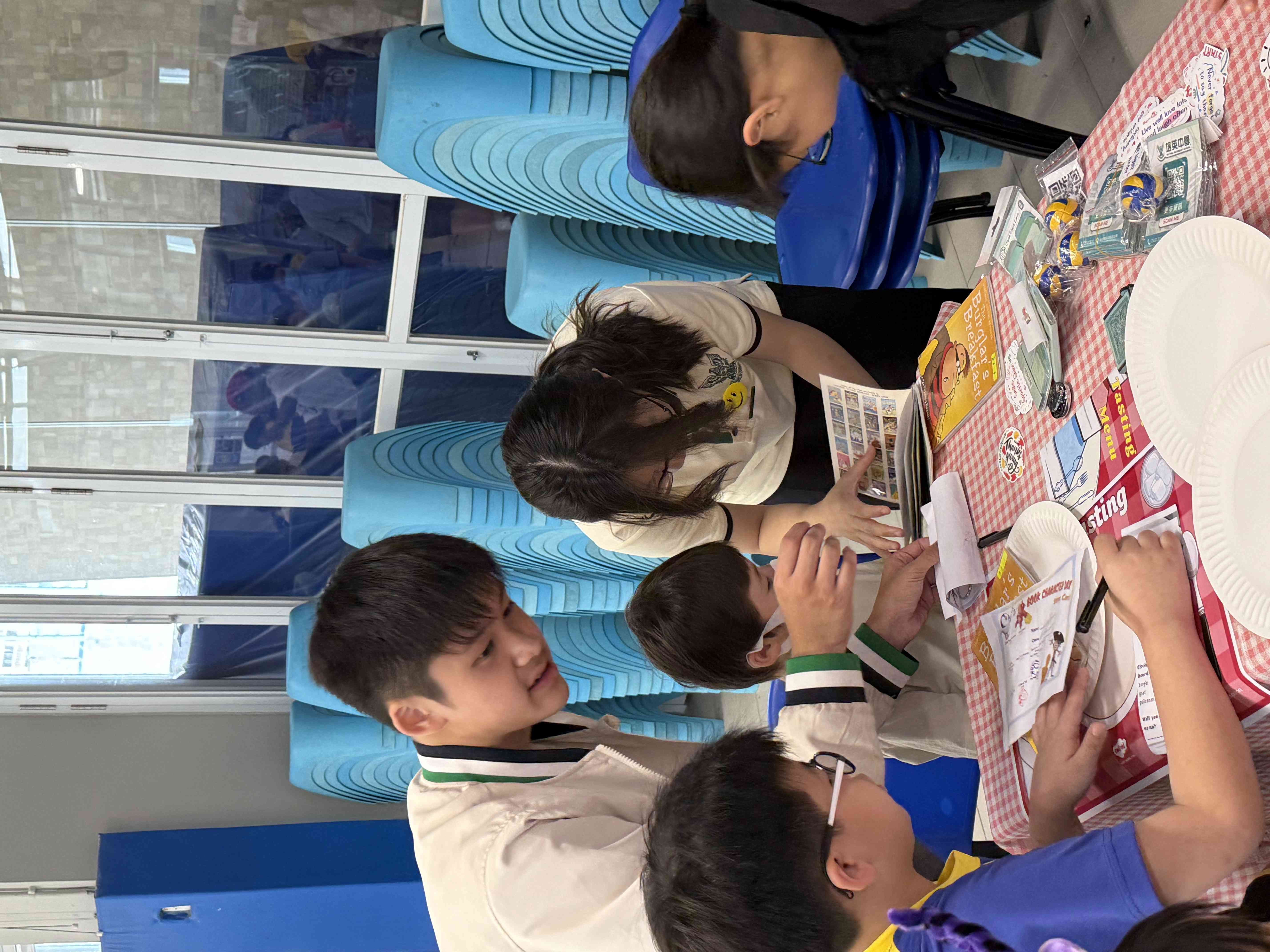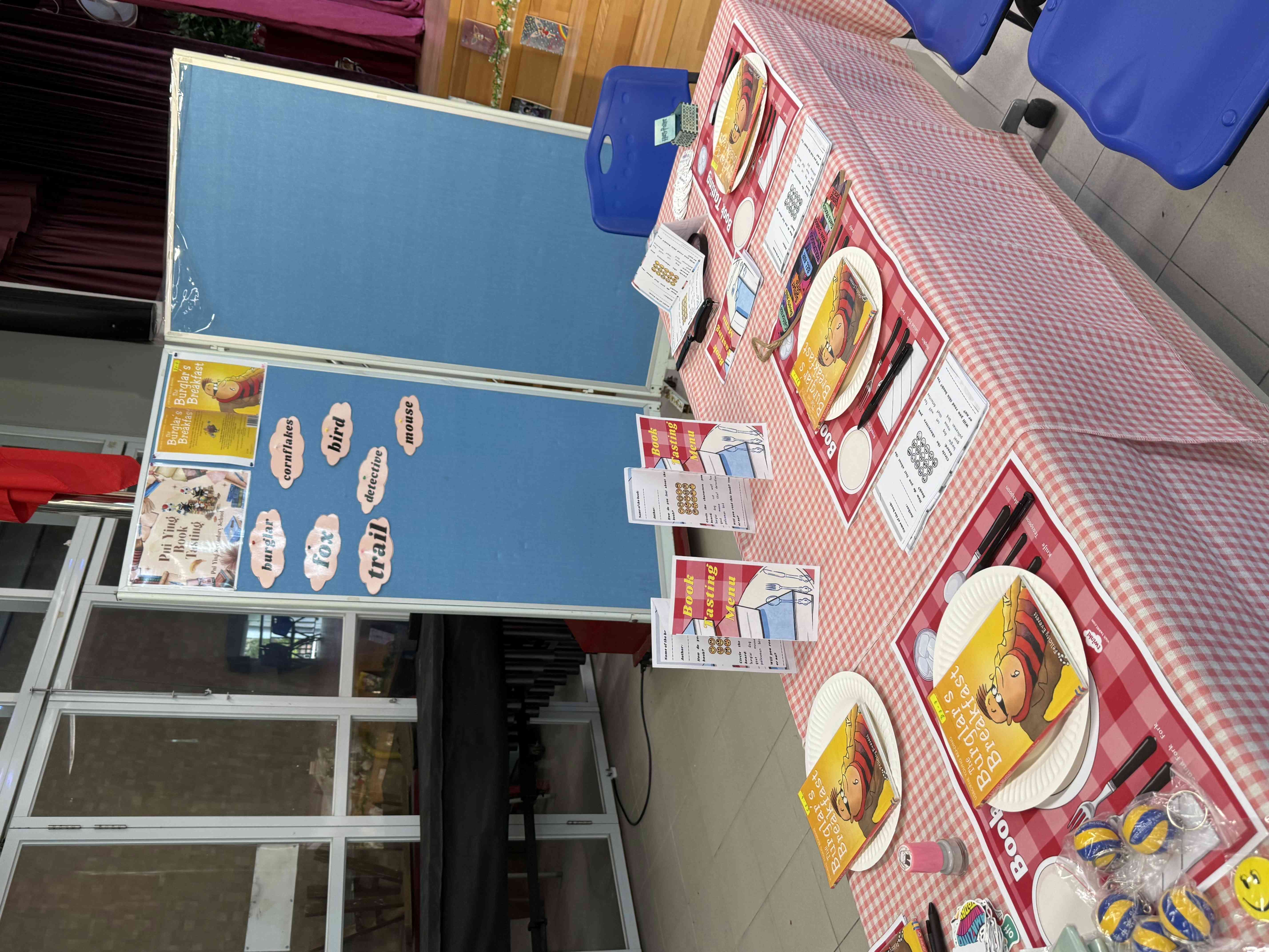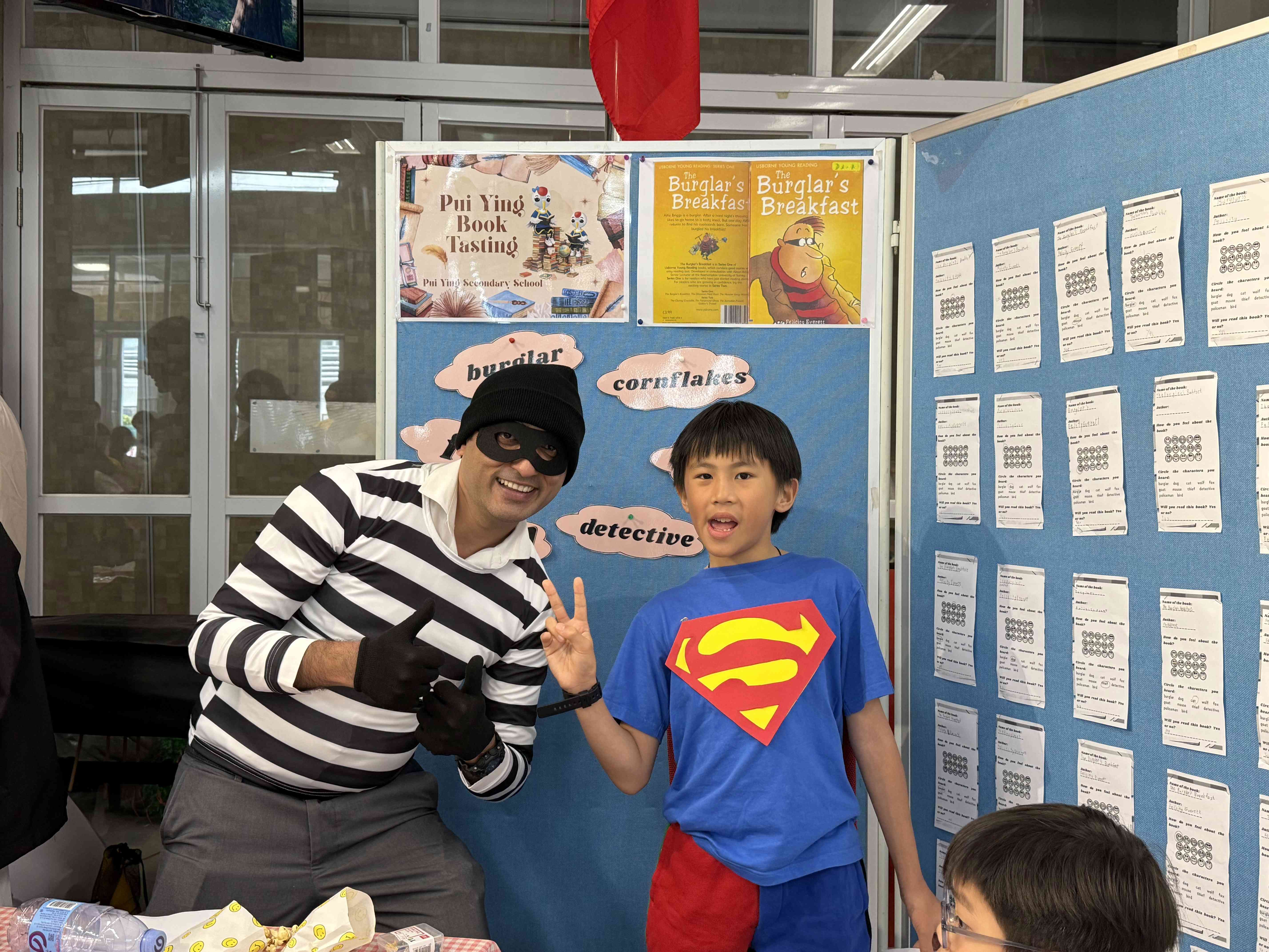 Teachers and students turned the booth into a dining table, inviting young students to "taste" a book. The featured book was The Burglar's Breakfast, one of our teachers dressed up as a burglar and did a lively storytelling session. Primary school students were immersed in the story by flipping through the book, listening to the story, and interacting with the character.