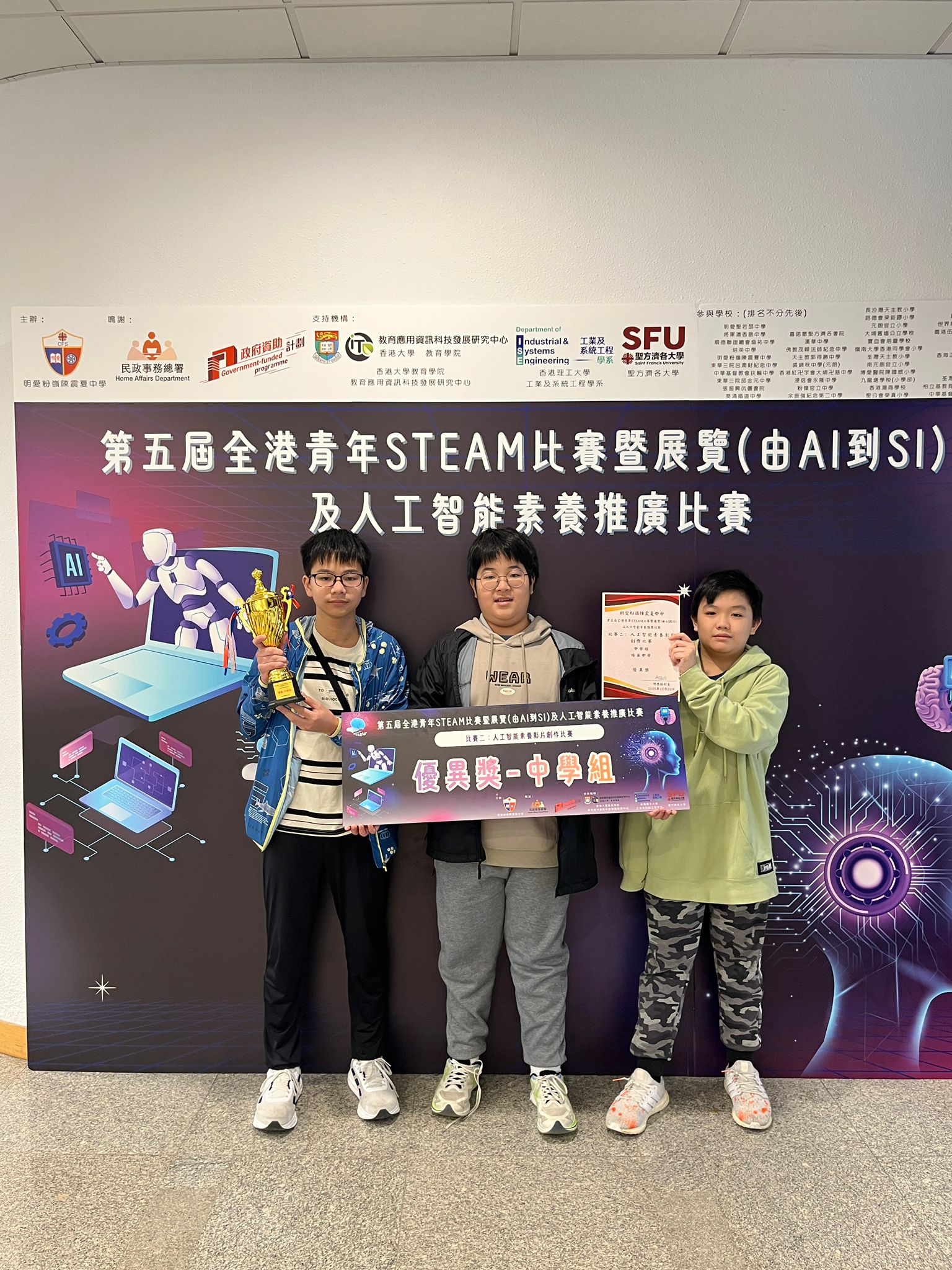在剛剛完成的【第五屆全港青年 STEAM 比賽暨展覽(由 AI 到 SI)及人工智能素養推廣比賽】中,我校派出由BYOD大使組成的隊伍,勇敢迎接挑戰,展現出色的團隊精神與創意。於「人工智能素養影片創作比賽」中,隊員們傾注心血,從構思劇本到拍攝每一個鏡頭,皆盡心盡力,展現出非凡的專業與熱忱。他們的努力終於獲得了評審們的認可,榮獲優異獎。相信在未來,他們必將持續發光發熱,為推動人工智能素養的普及奉獻更多精彩與創意。