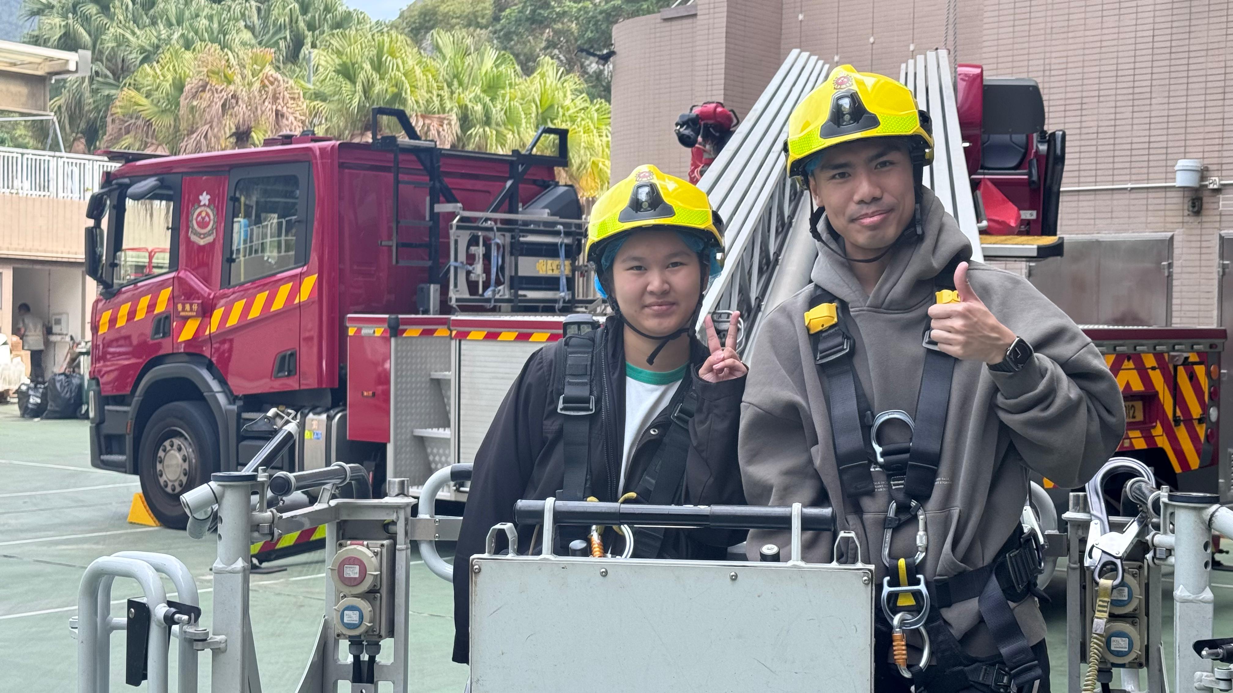 活動內容涵蓋理論講解與實務操作。在現職消防員的陪同及指導下,學生有機會親身體驗消防員的日常職務,包括登上鋼梯進行高空觀察,以及學習操作救火喉和滅火筒。透過這些實習環節,學生能具體認識消防工作的實際環境與體能標準。