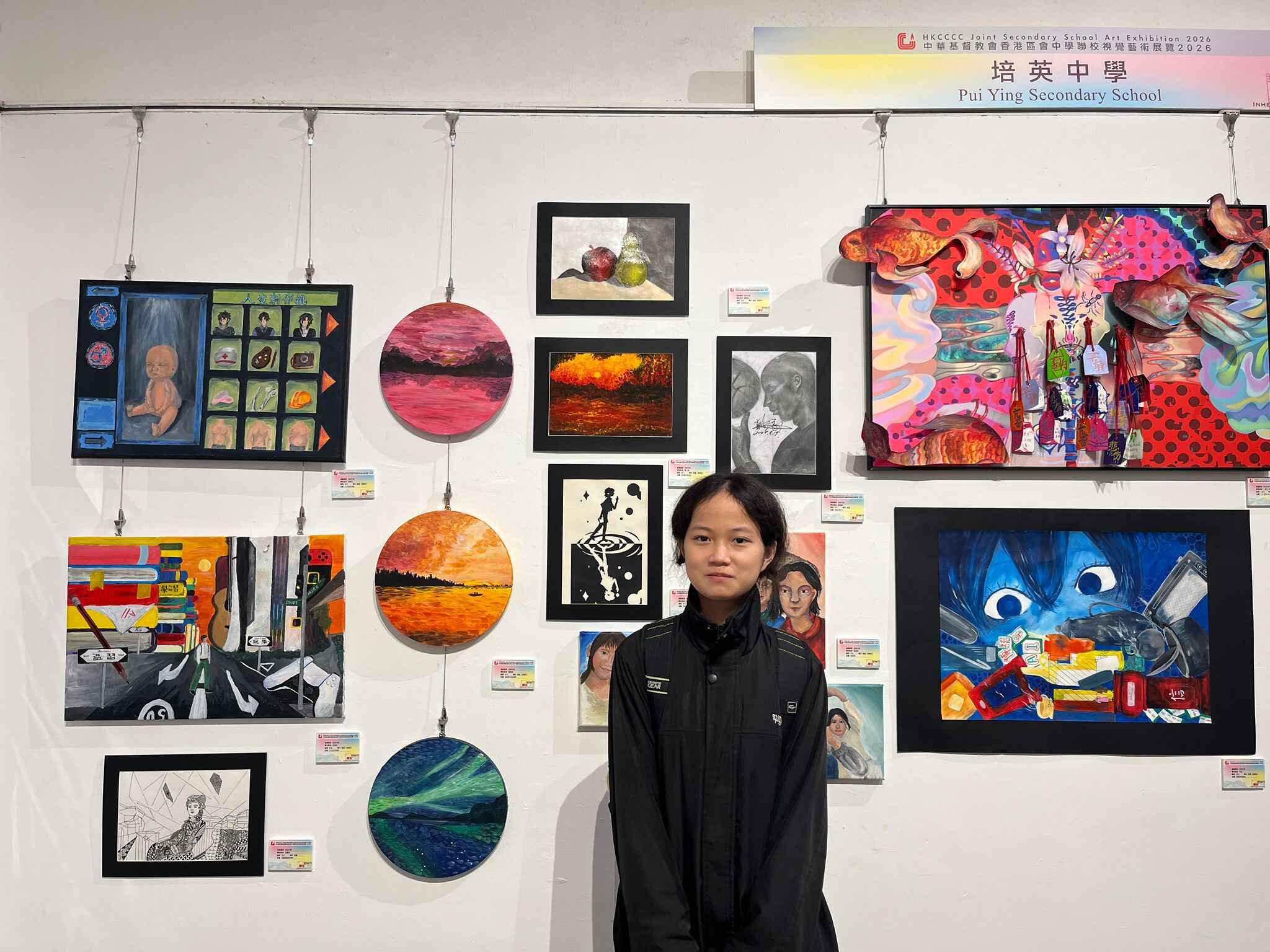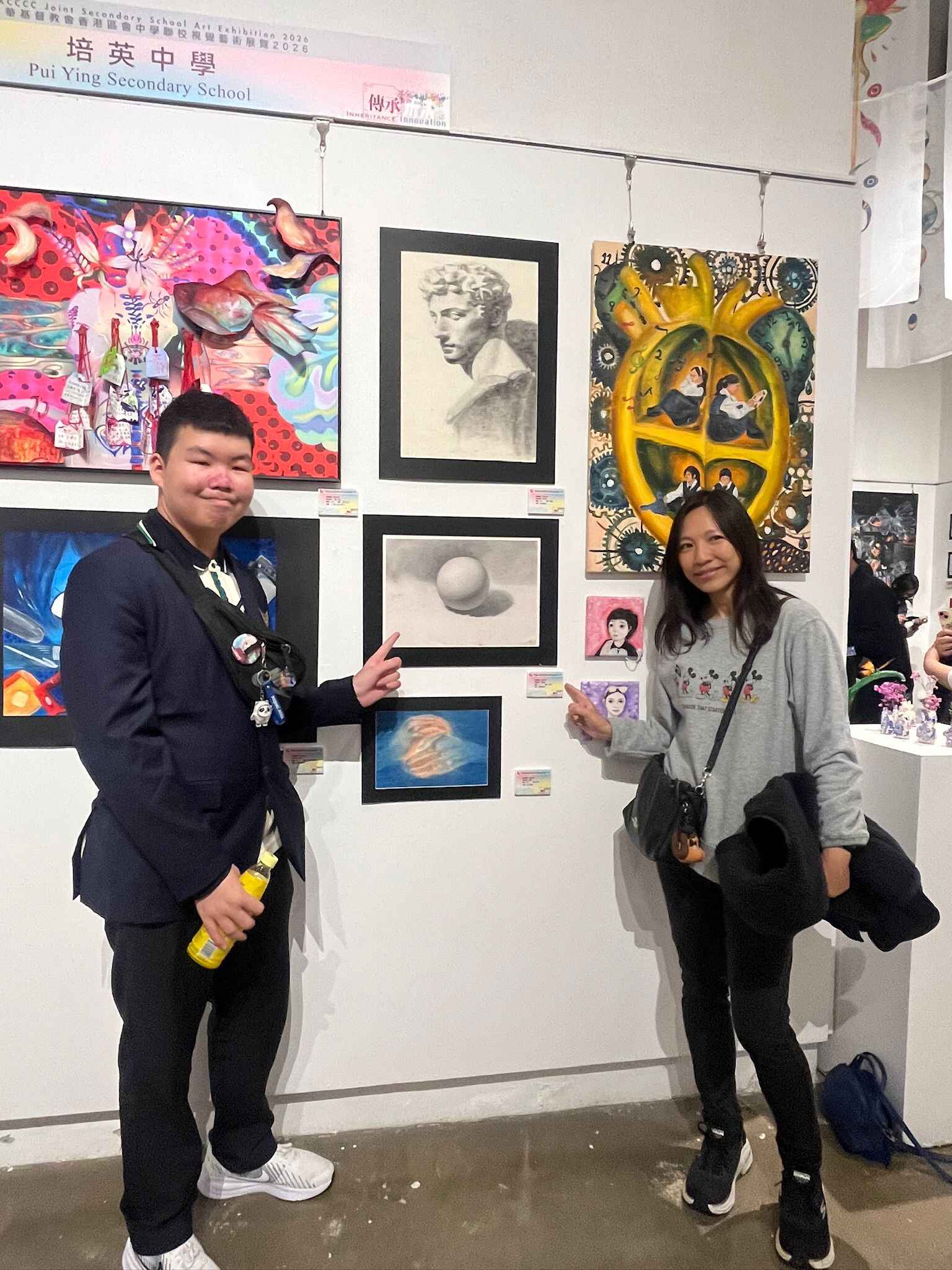 本校學生亦展示了17件初中及高中學生的作品,一眾師生及家長亦到場支持,見證我校學生的成果,並欣賞不同學校之藝術作品。